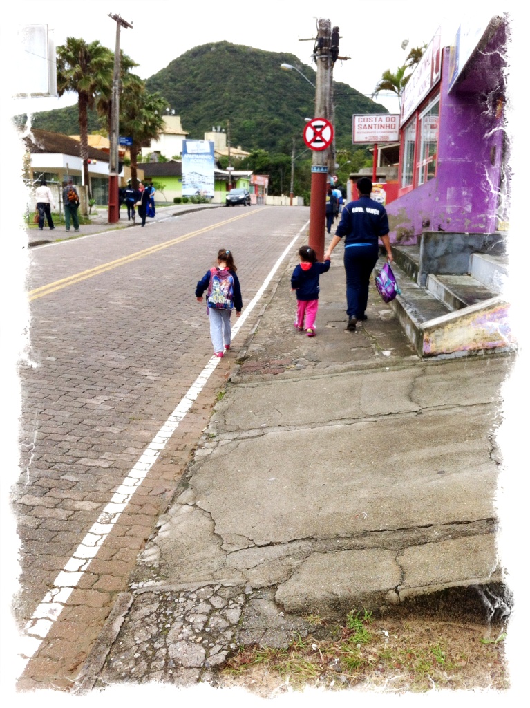 Talvez por conta do horário, a oferta de assentos disponíveis foi sempre verificada; apesar de eu preferir ficar em pé, pois o trajeto era de apenas cinco paradas de ônibus. Junto comigo, muitas crianças e adolescentes indo para as suas aulas. E mães… em sua grande maioria funcionárias do resort Costão; facilmente identificadas pelo uniforme.